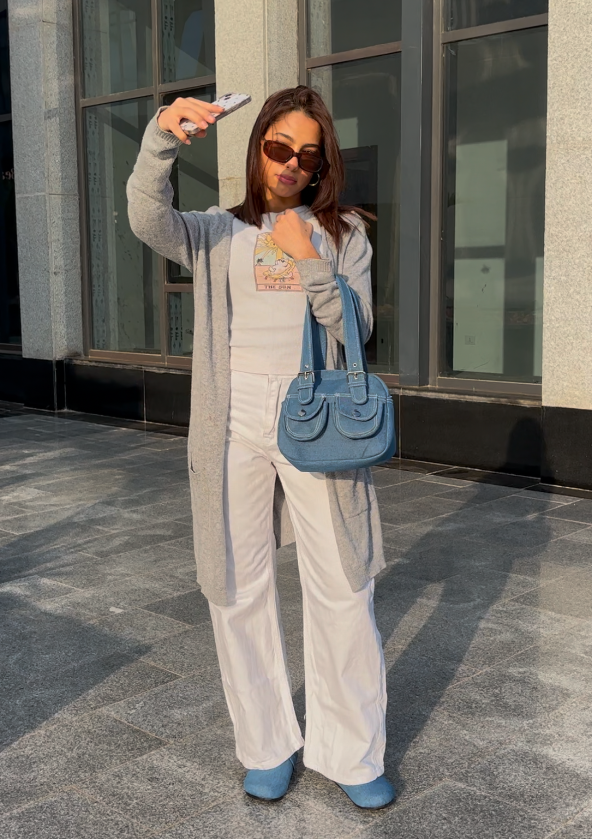 Introducing our timeless Denim Shoulder Bag, With its spacious compartments and comfortable shoulder strap, this bag combines fashion and functionality, making it perfect for everyday use.